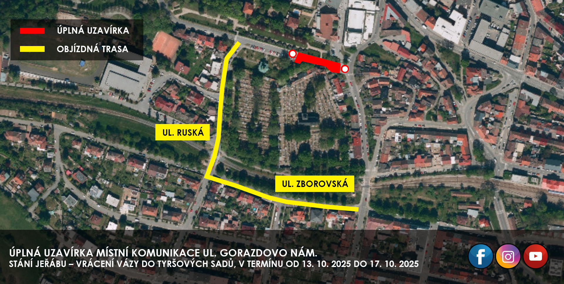Dne 13. října bude na 2 hodiny uzavřena silnice v ulici Gorazdovo náměstí. Důvodem je zajištění bezpečnosti při stání jeřábu - akce vrácení plastiky Váza do Tyršových sadů.