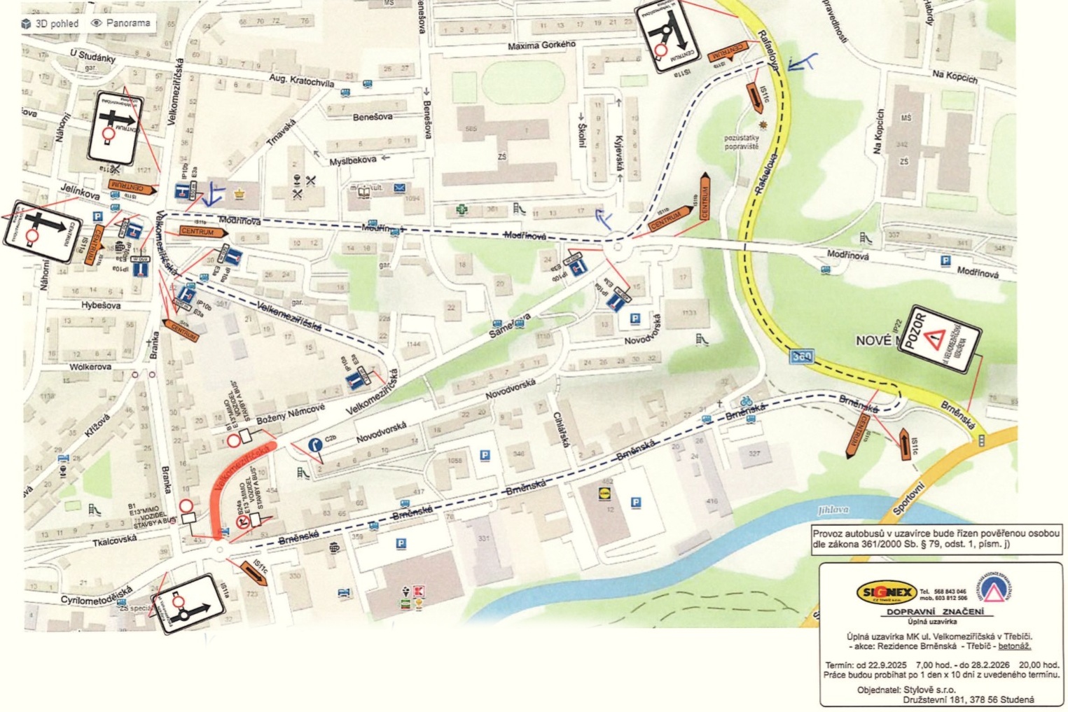 Z důvodu umístění pracovních strojů při betonáži rezidence Brněnská bude v termínu od 8. 10. 2025 do 26. 2. 2026 uzavřen úsek ulice Velkomeziříčská - POUZE 10 DNÍ Z UVEDENÉHO TERMÍNU.